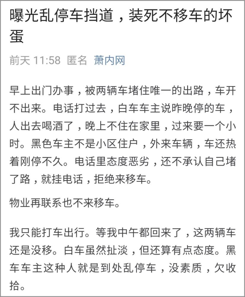 然而如网友描述,黑色车的车主拒绝移车。这大概让人怎么都笑不出来……