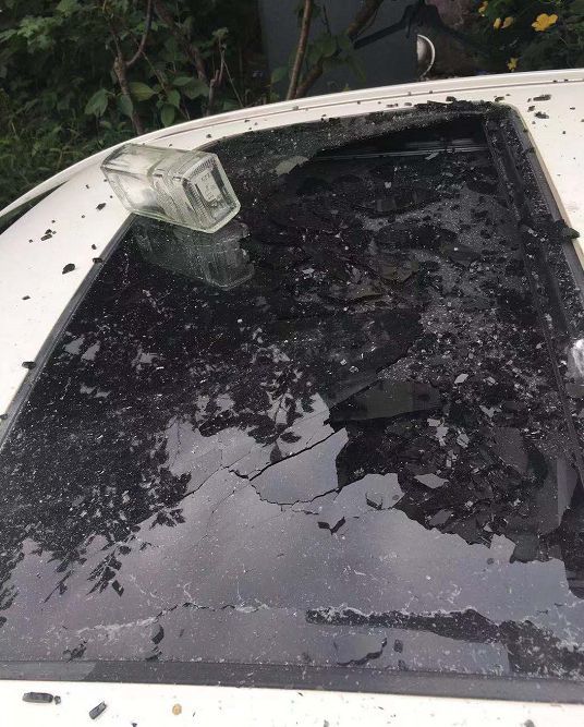 高空落下根棒棒糖,汽车玻璃破了个洞