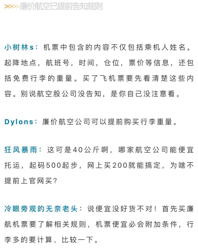 网友们纷纷评论,有理解航空公司的做法,也有对此表示不满的。