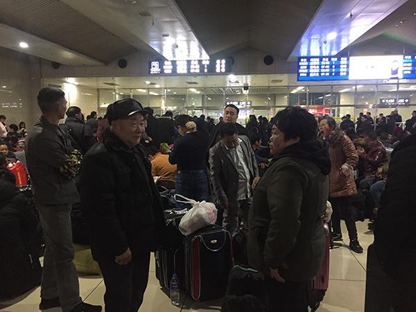 2019年1月17日,李中碧夫妇上海站在候车。澎湃新闻记者 何颖晗 摄