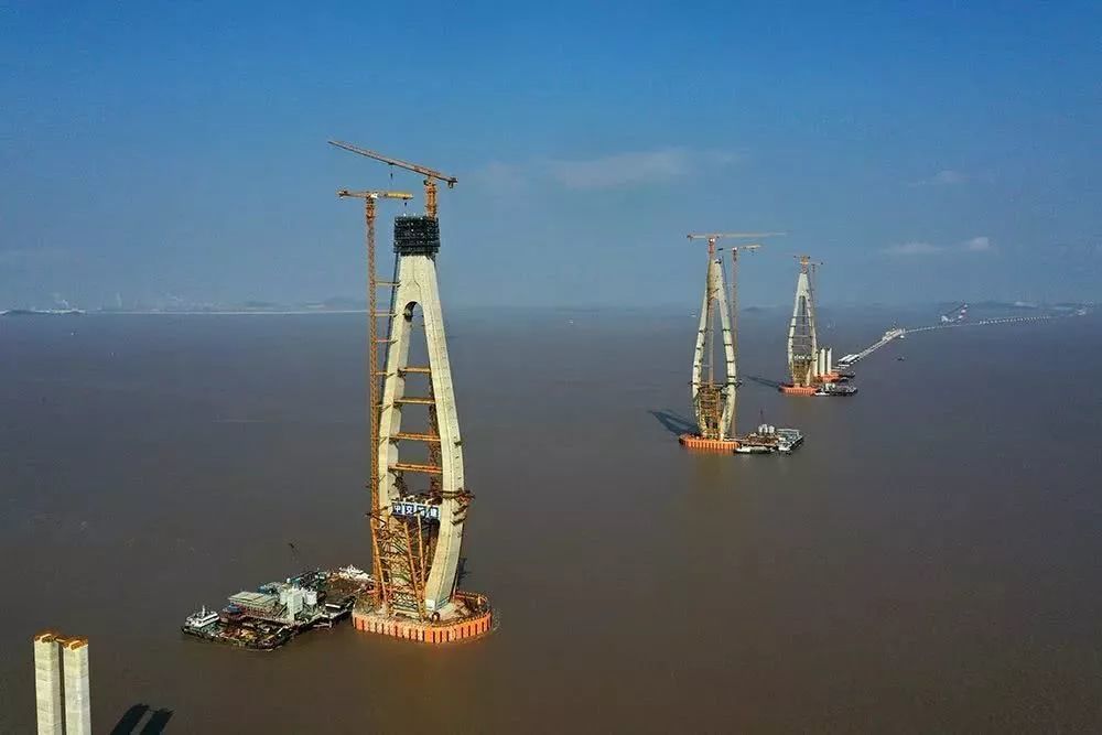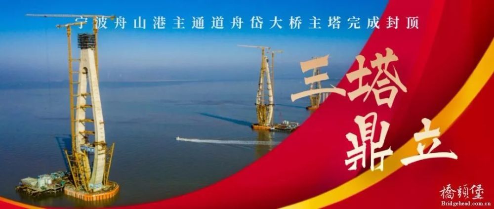 12月18日,由浙江交通集团投资建设的宁波舟山港主通道舟岱大桥主通航孔桥ZT3#主塔最后一个节段浇筑完成,顺利实现封顶, 标志着国内最大跨径三塔跨海斜拉桥主塔施工全部完成。