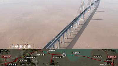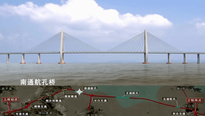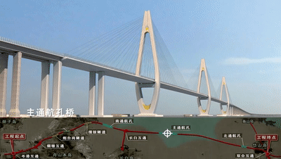 舟岱大桥主通航孔桥为主跨2*550米三塔双索面钢箱梁斜拉桥,全长1630米,其跨径组合为国内三塔跨海斜拉桥之最,能满足10万吨级油轮通航需求,是国内通航等级最高的桥梁!