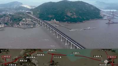 大桥与甬舟高速相连接,连岛工程跨越8个岛屿,总里程达到86.68km,将成为世界上最长的连岛高速公路和世界上规模最大的跨海桥梁群。