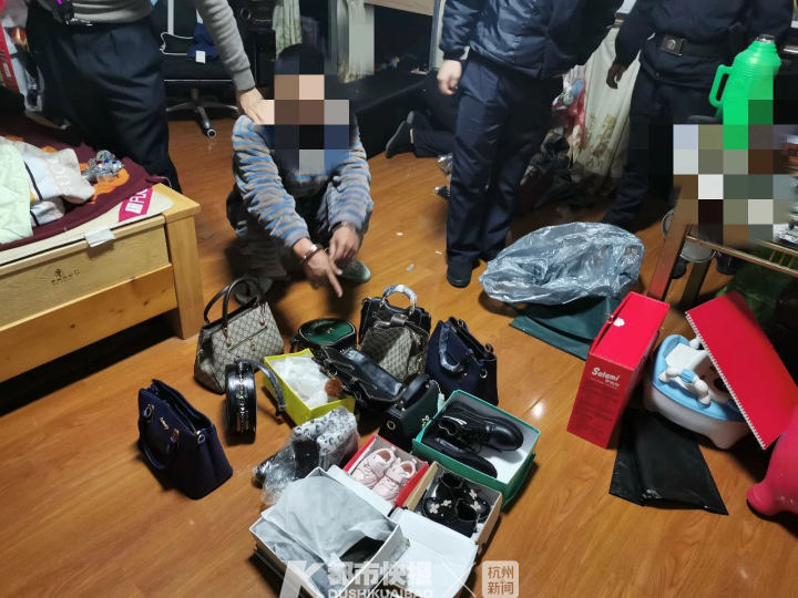 抓获嫌疑人的时候,民警都惊呆了:小小的房间内堆着一地的女士鞋、包、儿童鞋等……
