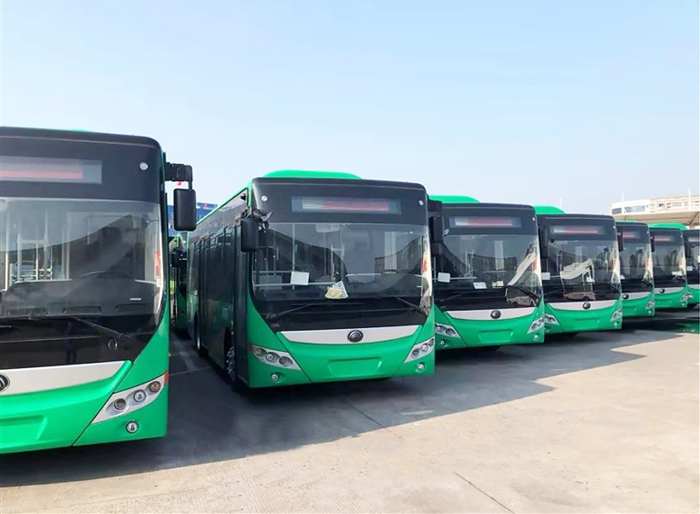 1月8日消息:1月6日,群众翘首期盼的42辆第4批郑州宇通生产的8米级纯电动公交车正在汽车西站做上牌前的技术检测,它们在阳光下“神采奕奕”,如被检阅的军队列队站立一般整齐,等待工作人员的检验。