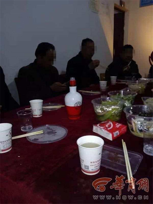 据田隆灏讲,照片中拍到的三个人分别为麻街镇党委干部陈某,肖塬村干部闵某和驻肖塬村第一书记赵某。另据田隆灏的亲友拍到的视频以及打探的消息,当日参加喝酒的人还有:麻街镇干部王某,肖塬村文书闵某某,另有施工方的鱼某、林某、刘某和两名挖掘机司机。
