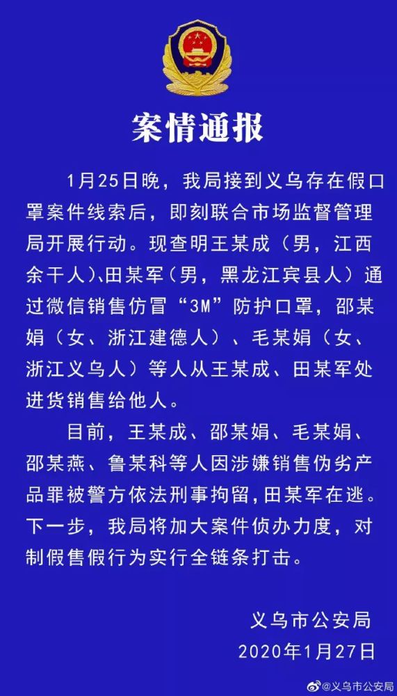 1月27日下午,浙江省义乌市公安局官方微博发布警情通报: