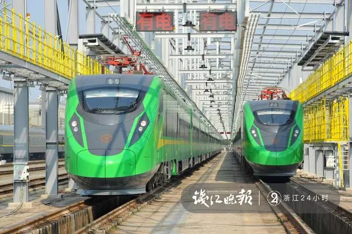 从1月21日开始一直到1月22日中午12点,两列18节长的“绿巨人”动车组先后抵达杭州南星桥火车站,随后入住它们在杭州的“小窝”,整装待发后,它们将于1月23日晚上正式上线,开门迎客,执行杭州往返北京的D712/D711次列车。