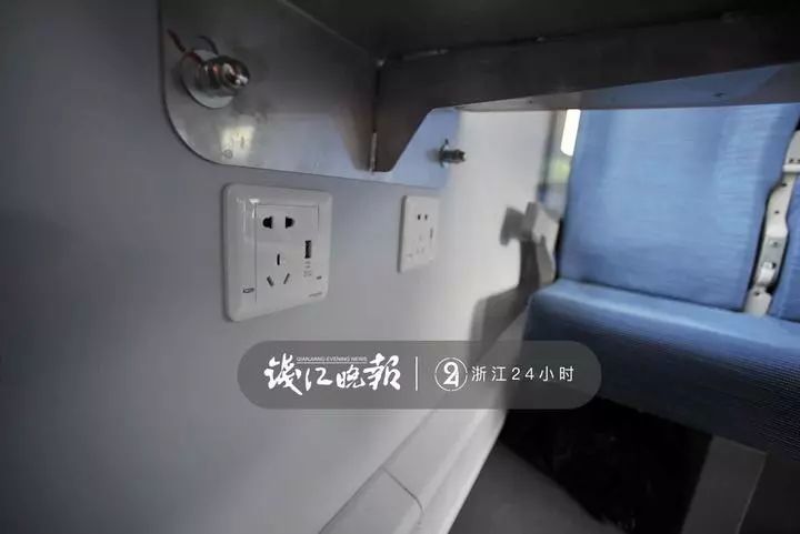 与以往绿皮车不同的是,“绿巨人”二等卧的上铺空间比绿皮车卧铺要增高一些,对于睡在上铺的旅客来说,舒适性更好。在细节方面,“绿巨人”二等卧每个铺位都设置了阅读灯和手机USB充电接口,坐火车没有充电宝也不用怕啦。