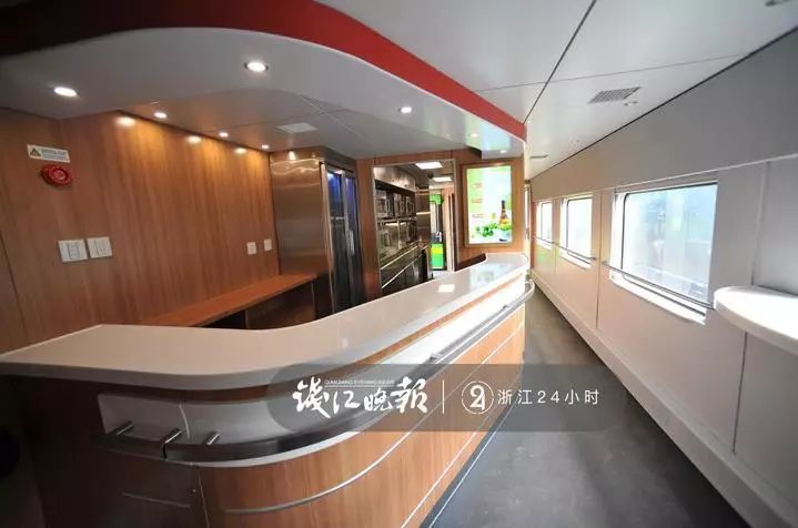 9号车厢是餐车/二等座车,“绿巨人”的餐车和高铁的餐车一样,采用冷链配送代替了明火灶头现场炒菜,在食品卫生上更有保障。