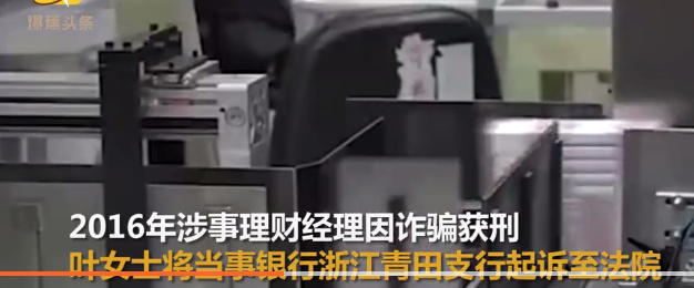 根据叶女士起诉,2010年,在海外做生意的胡先生,以妻子叶女士的名义,在中国农业银行浙江青田支行存入1900余万元,并将该笔钱款委托给该银行个人金融部经理叶国强理财。