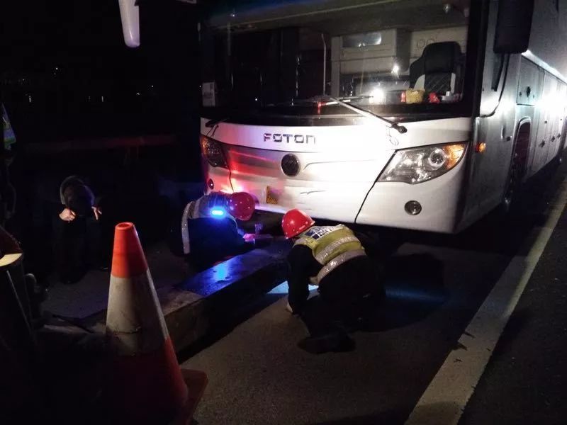 1月25日晚上8点36分,正值春运第五天,杭甬高速绍兴管理处巡查员和高速交警在夜间巡查中发现一辆牌号为皖K开头的大客车在嘉绍大桥接近K243的位置发生传动轴故障无法行驶,停在应急车道上。此时,车上共有53名安徽籍返乡乘客,且春运夜间车流量大,一旦出现追尾事件,后果不堪设想,紧急之下巡查人员立即对应急车道进行封闭保障司乘人员安全,并做好预警报监控值班室要求及时施救。