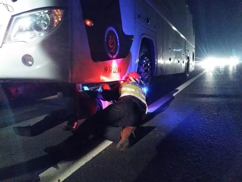 监控值班室接到上报信息,第一时间启动客车救援应急方案,并在后方情报板给予提醒。不一会儿,清障车达到现场,考虑到车上都是返乡乘客,大家归乡心切,且人数众多,当务之急就是将故障车辆拖离至安全场所,并联系其他车辆进行旅客运输。可是晚间光线不佳,且客车车身底盘比较低,救援人员找了几次都未能发现车辆底座插口位。情急之下,救援人员不顾天冷地冻,不怕脏不怕累,在车底穿梭十几次,终于把故障车辆稳稳地安装在了拖车上,对二个前轮进行绑带捆绑牢固。