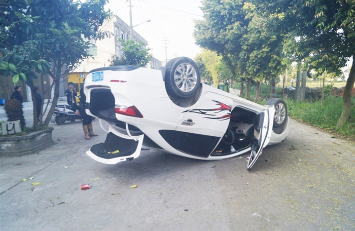 近日,钱库镇发生了一起因疲劳驾驶撞树翻车的单方事故。民警到达现场发现一辆白色轿车四“脚”朝天,翻在道路中央,前挡风玻璃已破碎,车身多处变形受损,后备箱也被弹开,车内的物品散落一地,驾驶员雷某没有受伤,车上两名乘客均受皮外伤。经调查,当日16时许,雷某驾车由钱库镇岭脚村驶往龙金大道方向,途经括山将军小区21号前路段时,因车内温度高,雷某感到疲倦犯困,一时分神,导致翻车。