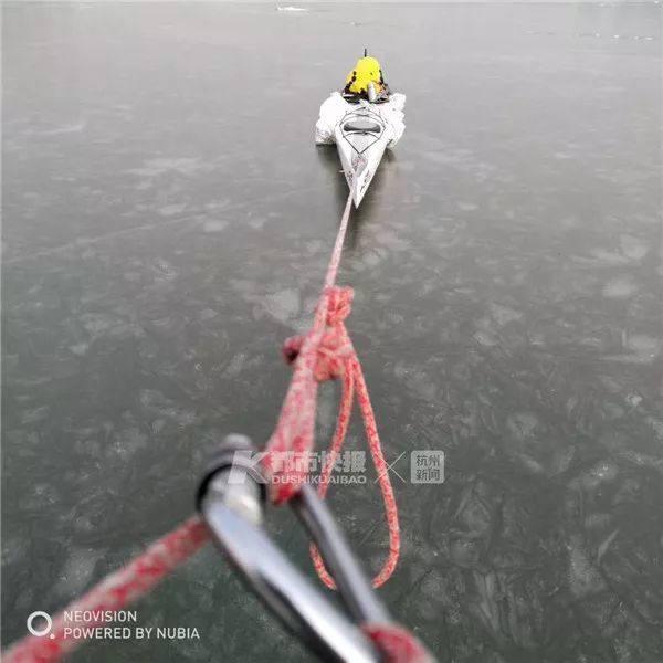微山湖里,天实在太冷,船桨接口都能听到有碎裂的声响,正好划到结冰最厚的地方,遇到两艘拉柴火的大船,直接凿开冰面前进,爆开的冰再砸到艇上,“好怕艇底被砸穿,那就没法完成这个事情了。最后还好,艇还是比较结实的”,陈文军说。