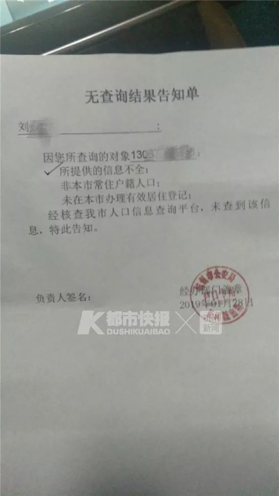 回到长河派出所,民警查来查去,发现提供的信息不全,给刘师傅开了一张“无查询结果告知单”。