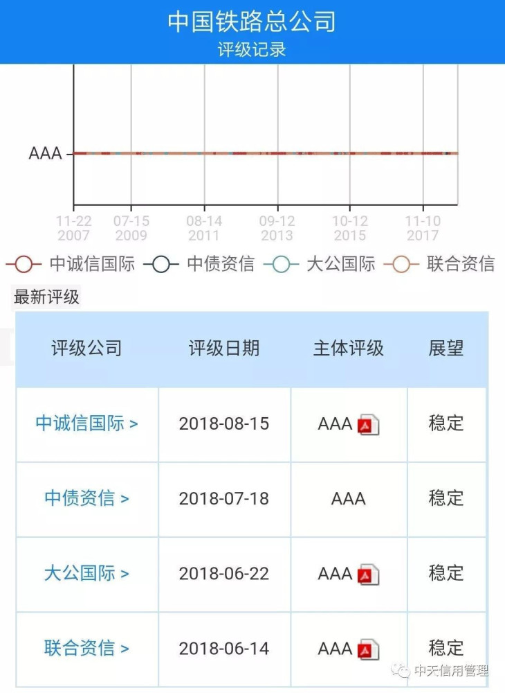 (中国铁路总公司主体信用评级变化 图源见水印)