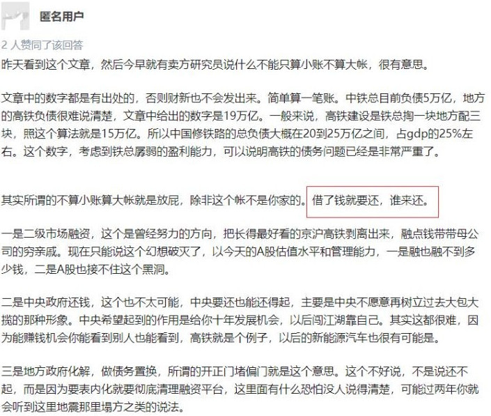 (误认为18.29亿元地方债务都是由于修建高铁的某位网友)
