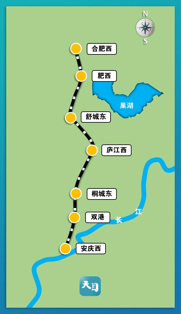 合肥至安庆高铁,是我国“八纵八横”高铁网京港通道的重要组成部分。这条铁路位于安徽省西南部,地处长江和巢湖流域,线路自新合肥西站引出,同时通过肥西联络线与合肥南站接轨,经肥西、舒城、庐江、桐城、怀宁等市县,终至新安庆西站,正线全长约162公里,设计时速350公里。全线设合肥西、竹溪、肥西、舒城东、庐江西、桐城东、香铺等车站。