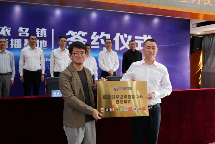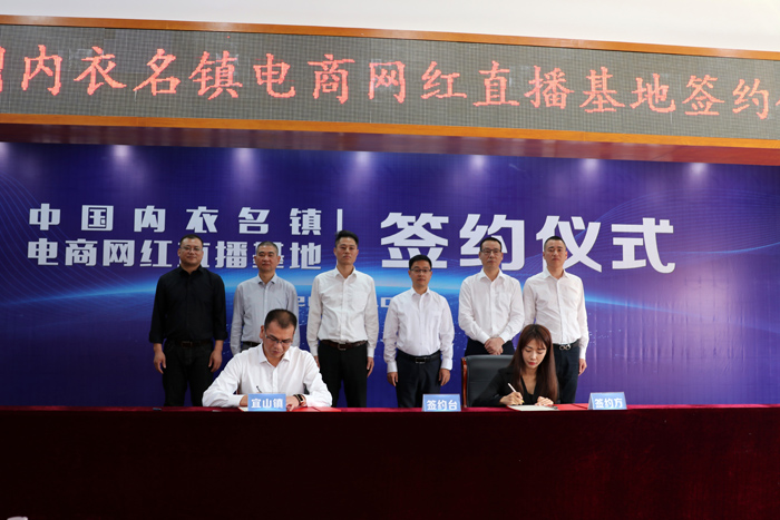 10月30日消息:10月30日上午,中国内衣名镇电商网红直播基地在宜山镇举行签约仪式。现场,宜山镇分别于9个带动项目进行签约,合作单位涉及县针织协会、浙江橙树网络技术有限公司等9家,合作内容包含数字产业带建设及公共云仓项目、产品研发基地项目、抖音官方授权直播基地项目等。签约成功后,将有力推动宜山针织产业跨越发展。副县长许生陆出席仪式。