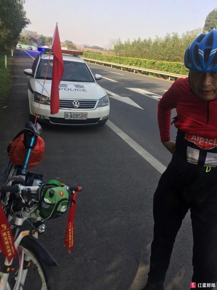 民警了解了老郝的情况后,随后决定将其送下高速,并对其进行安全教育,民警护送老郝在南充南收费站下了高速,老郝也表示以后出行一定好好规划,不再在高速公路上骑行。