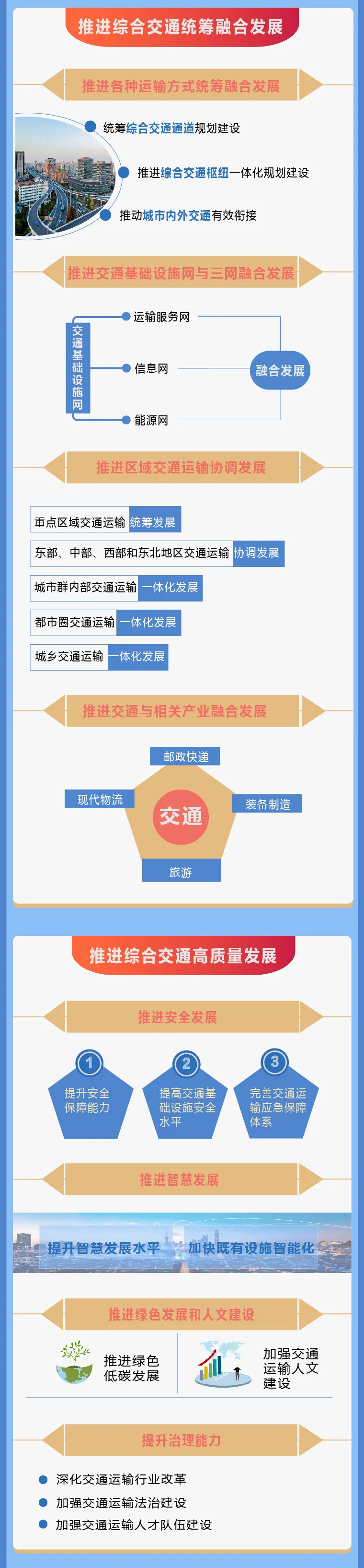《规划纲要》以习近平新时代中国特色社会主义思想为指导,明确发展目标到2035年,基本建成便捷顺畅、经济高效、绿色集约、智能先进、安全可靠的现代化高质量国家综合立体交通网,实现国际国内互联互通、全国主要城市立体畅达、县级节点有效覆盖,有力支撑“全国123出行交通圈”(都市区1小时通勤、城市群2小时通达、全国主要城市3小时覆盖)和“全球123快货物流圈”(国内1天送达、周边国家2天送达、全球主要城市3天送达),交通基础设施质量、智能化与绿色化水平居世界前列。