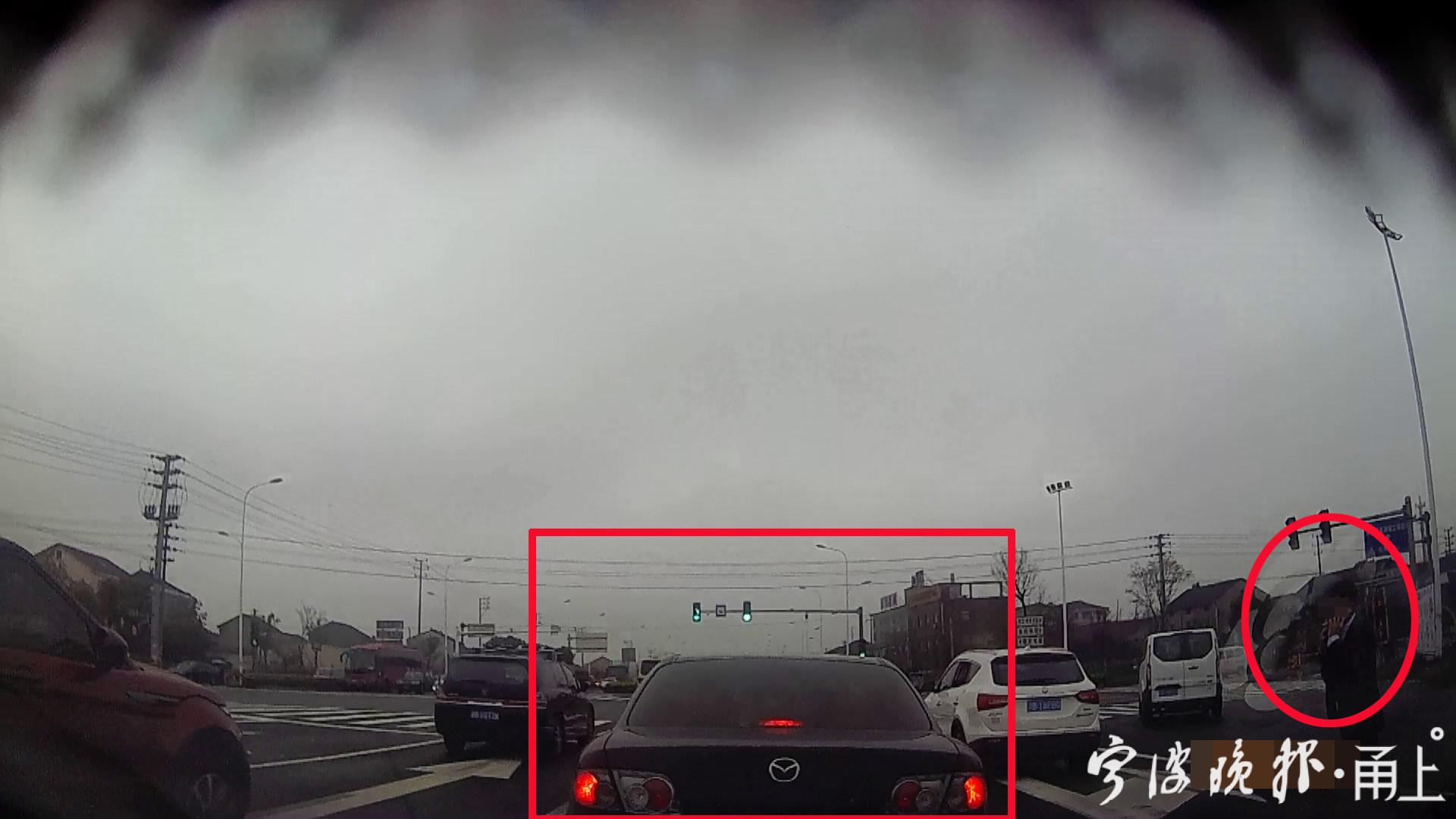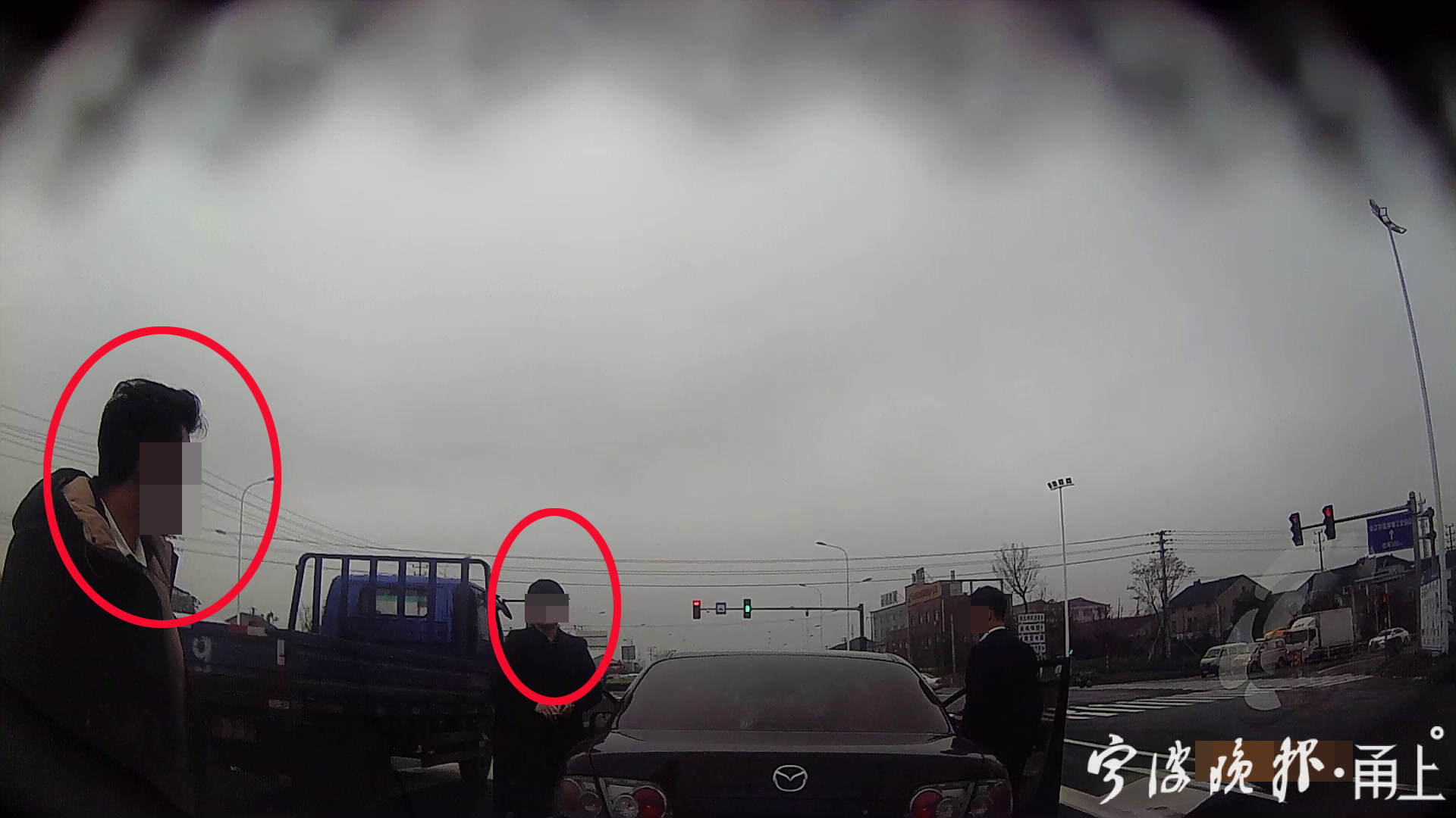 3月20日,慈溪市公安局交警大队接到市民黄先生的报警,称有人绿灯时仍占道不通行,并提供了自己行车记录仪的视频。据黄先生所述,当天下午3点10分左右,他驾驶轿车沿中横线由西往东行驶至历崔线路口,发现前方一辆马自达轿车在直行绿灯的情况下仍未往前行驶。没多久,路边走过来一人,准备上车。黄先生按了按喇叭催促,并和准备上车的男子发生了口角。黄先生还下车和对方车上的两人理论。