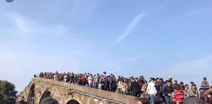 这个春节,余杭各景区又开启了“人从众”模式,来自全国各地的游客相聚于此。随便看看昨天塘栖这两张图,有勇气过桥吗?