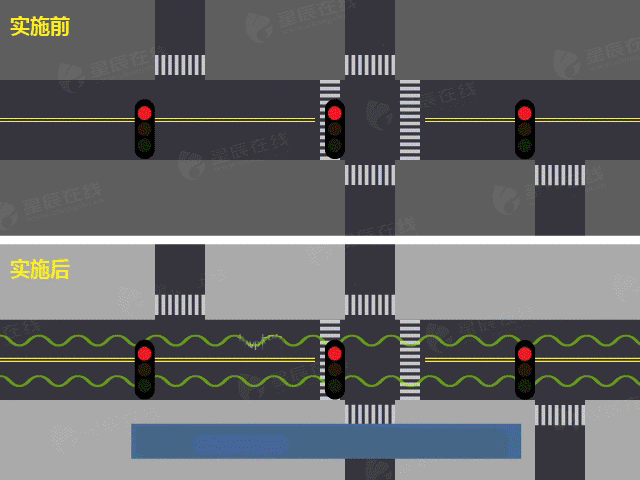 所谓“绿波带”,就是依托SCATS(动态自适应的双向绿波带协调控制系统),计算车辆通过某一路段的时间,再对各个路口的红绿灯信号进行协调,使车辆通过时能连续获得绿灯。