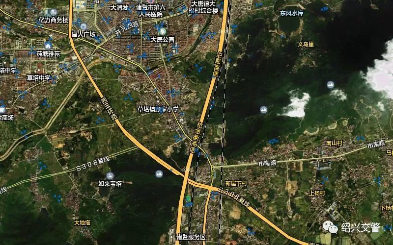 常台高速上虞方向嵊州或新昌段拥堵缓行时提早绕行示意图