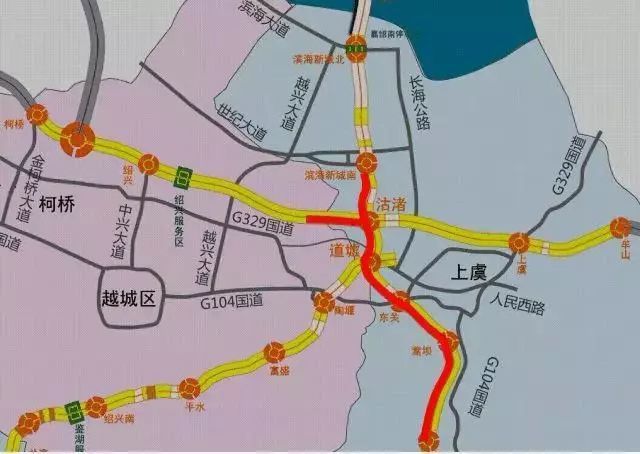 G92杭州湾环线杭甬线杭州方向绍兴至沽渚段、G15w高速(上三线)上虞方向嵊州段、G15w高速(上三线)上虞方向新昌段。