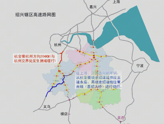 杭金衢高速杭州方向204K拥堵缓行时提早绕行示意图
