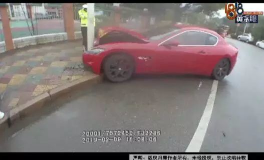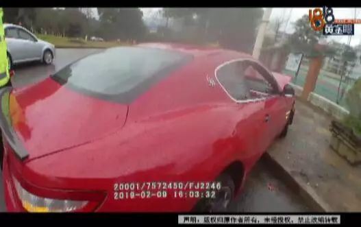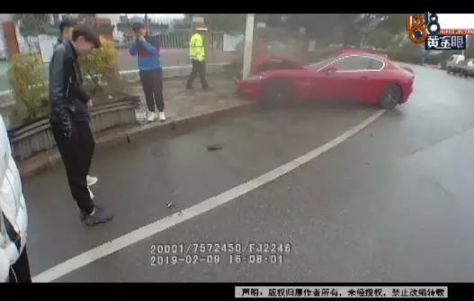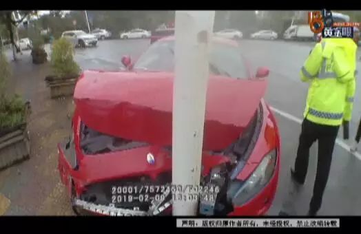 近日,永嘉越江路上,一辆红色玛莎拉蒂一头撞上了路边的一根灯柱,灯柱被撞得摇摇晃晃,副驾驶座乘客慌慌张张地下了车。