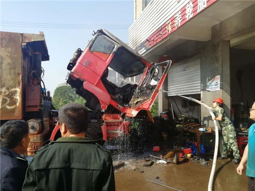10月7日上午8点50分,金华市婺城区白龙桥古方二村一家修车店,一辆正在维修的大货车驾驶室突然起火。由于火势凶猛,周边群众自救无效,只得报警等待消防部门救援。