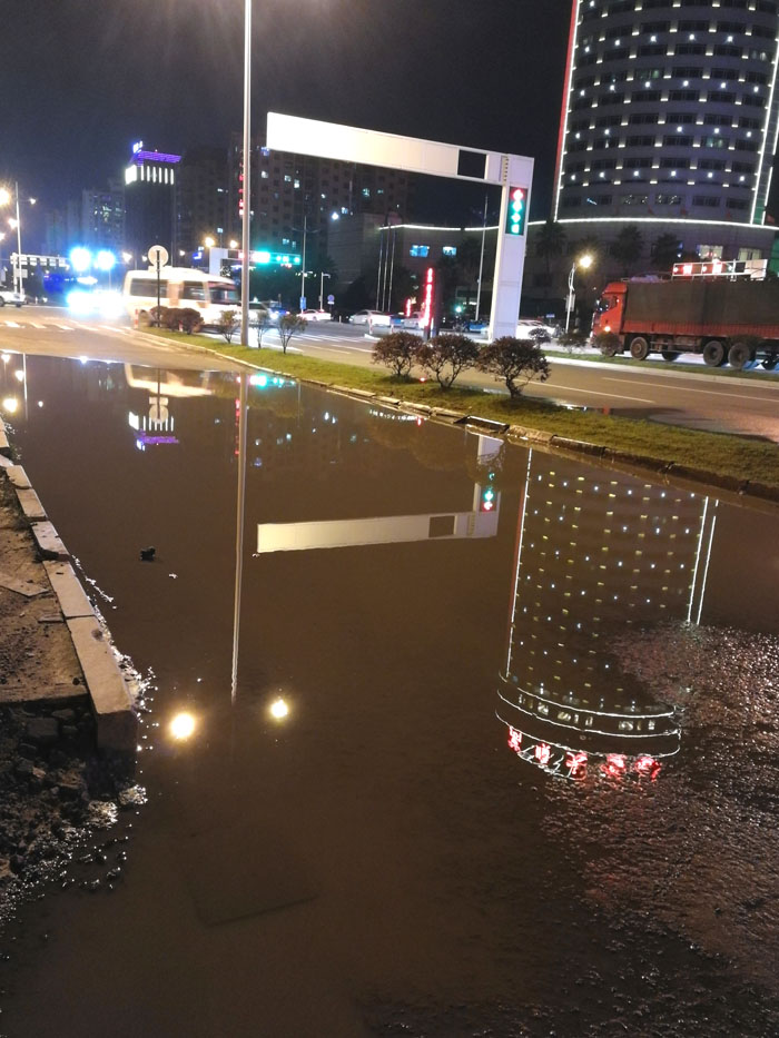 每逢雨天,苍南县灵溪镇建兴路与车站大道交叉口(万顺大酒店)一人行道上,总会出现一片积水坑,行人至此无从下脚。