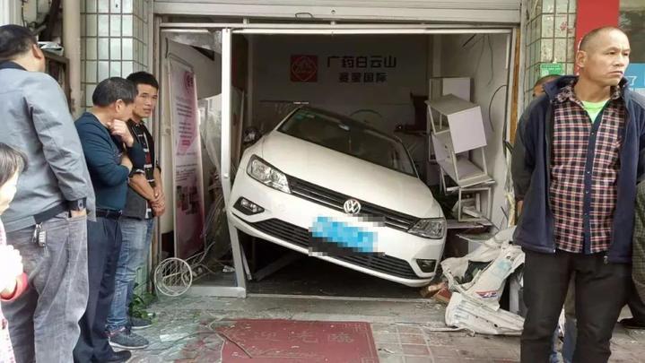 附近的人纷纷猜测:司机可能是在人行道上倒车,但启动车子后猛踩油门导致车辆快速后冲,后来想停车时又误将油门当做了刹车,导致车辆直接冲进店中。