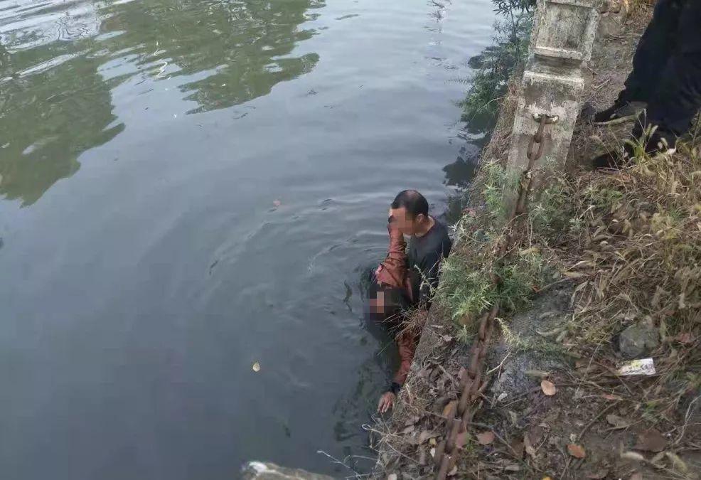 没过几分钟,宁围派出所的民警也赶到了。几名辅警跳下河,借助工具合力把跳河女子拉上了岸。