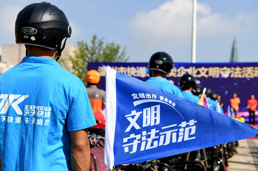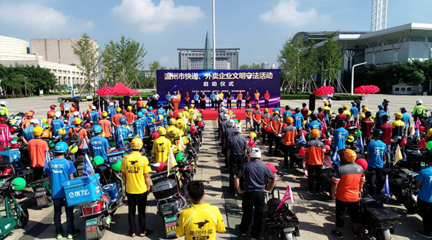 为规范从业人员驾驶电动车文明守法行为,推动政企、警企共建共治,9月19日,市文明办联合市公安局交警支队、市邮政管理局开展“全市快递、外卖企业文明守法”活动,100余名交警铁骑代表,美团、中通、顺丰等10家快递配送企业的骑手代表参与活动。