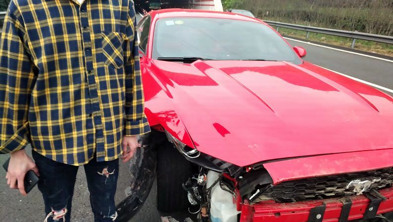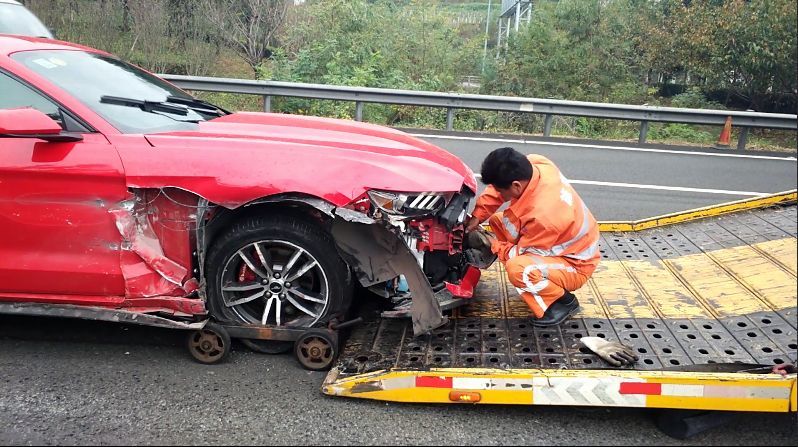 高速交警询问得知,红色小车驾驶员王某想趁周末从舟山到宁波游玩,他租了一辆跑车,一路上都是跟着手机导航走,就在快要驶出望娘岗隧道的时候,有一个电话打进来,于是他左手握着方向盘,右手去接电话,当他发现前面有一辆小车时,已经来不及刹车了,王某急忙向右打了方向,但还是撞到了前车。紧接着,车子跑偏又撞上了隧道水泥护栏,最后又滑行十几米才停下来。