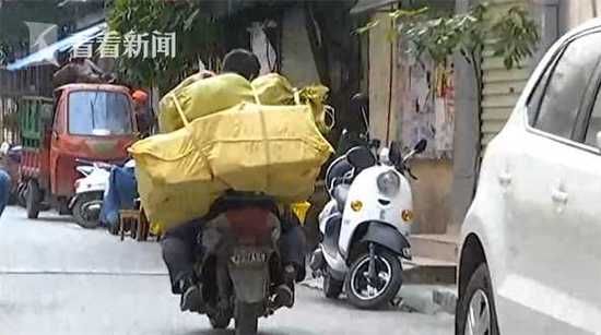 快递小哥小银说:“我们在下面那个桥底那里,是看到一个中年男人。他是骑着一个脚踏三轮车,我看到他把两袋包裹都搬上车了。”