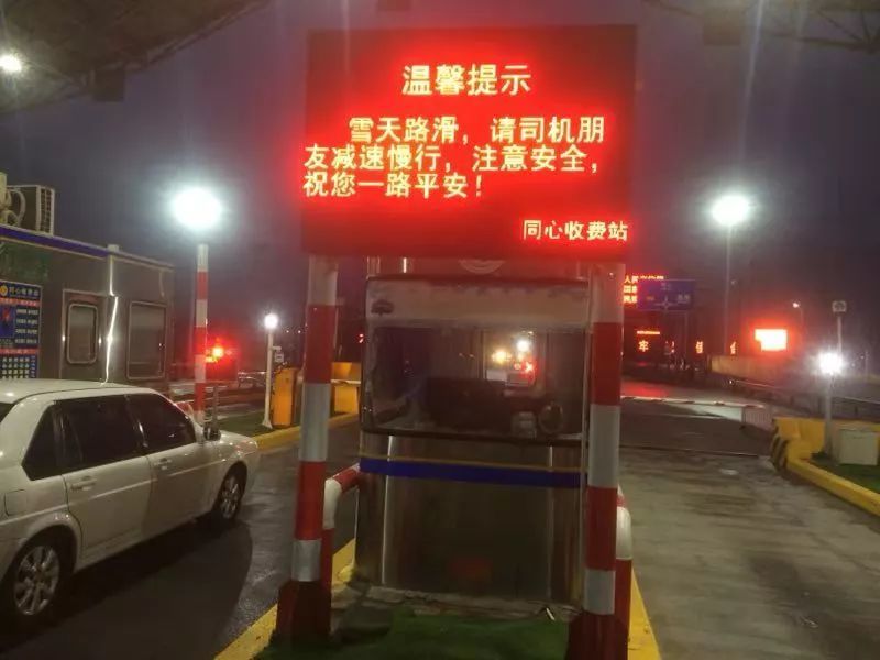 同心收费站再次提醒广大司机朋友:雪天路滑,请司机朋友减速慢行,注意安全。随时关注路况信息。