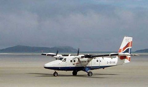 苏格兰的巴拉机场只是在沙滩上修建了一条临时跑道,
