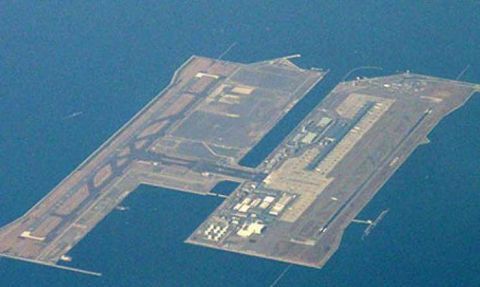 建造在大阪湾人工岛屿上的关西机场是一项建筑传奇,