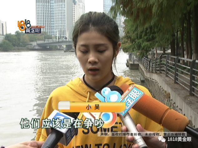 小吴:“桥上一男一女,他们好像是在争吵,我刚刚好路过她们的时候,那个女的直接就跳下去了,我看那男的也没拉她,无动于衷的样子(争吵什么内容?)我听不清,我一过去,那个女的就跳下来了。”