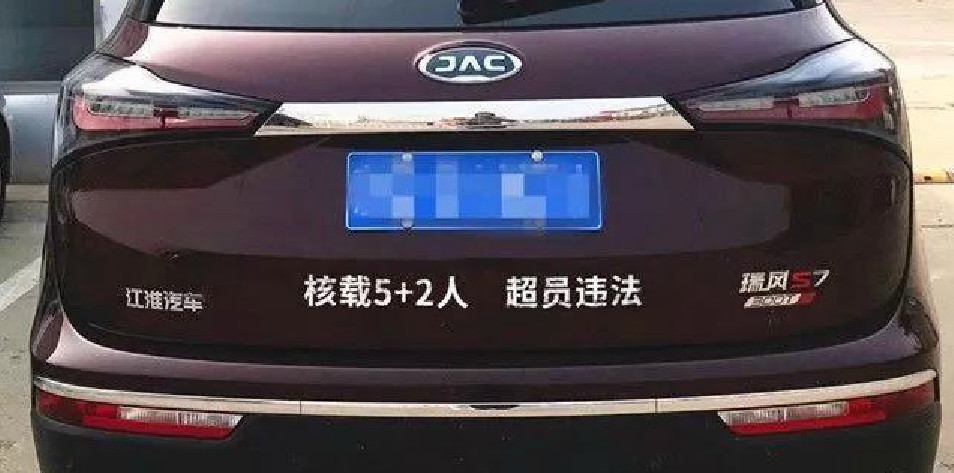 前段时间一位瑞风S7的车主在车管所就被喷字了,到了车管所之后,工作人员也不管瑞风S7车主怎么解释,直接就要求给这辆瑞风S7喷上字。看来是车管所对喷字进行了改动,直接把喷字喷在了车尾,“荷载5+2人,超员违法”的字样喷上去之后,感觉车子立马就掉了一个档次。车主表示:现在开着它感觉非常丢人
