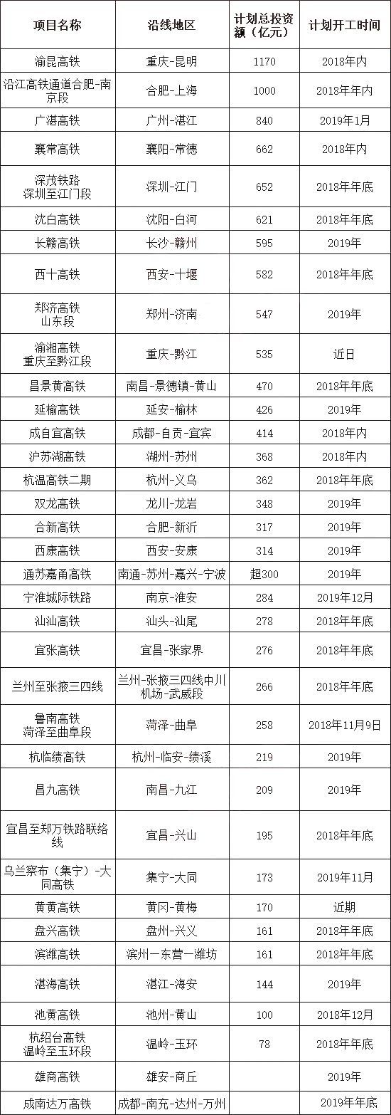 即将开工的大型高铁项目多达35个,总投资超14000亿元: