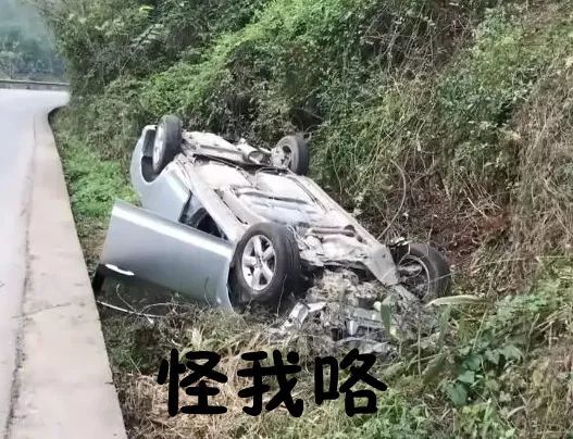 自已把车开翻了