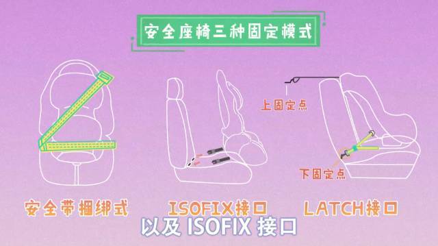 每次乘车前,都需要确定安全座椅是否被固定住了。目前市面上的安全座椅,有三种固定模式,分别是安全带捆绑式、LATCH接口以及ISOFIX接口。