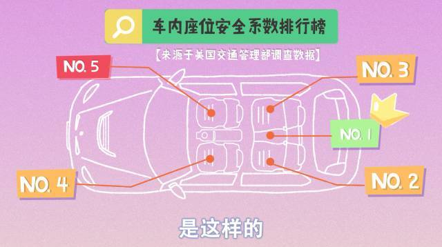 据统计,发生车祸时,车内座位的安全系数排行榜由高到低分别是:后排两座缝隙、后排左侧座位(驾驶员后座)、后排右侧座位、驾驶员位置和副驾驶位置。