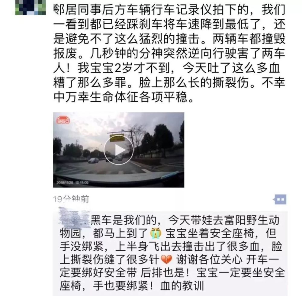 车是老公开的,因为安全绳没系紧,路上宝宝将两手从安全绳挣脱出来。就在上午10点15分,离野生动物园一公里不到的地方,肇事车逆向对冲过来,事故发生了。